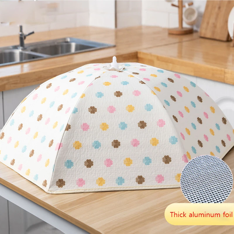 הכיסוי המתקפל הזה עשוי אלומיניום, שומר חום ומכסה טוב את האוכל.